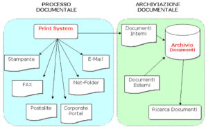 Processo Documentale: ha lo scopo di automatizzare e rendere più rigido l’inoltro dei documenti prodotti internamente dalla procedura (attraverso il processo di Stampa o Print System) verso tutte le possibili destinazioni: Stampante, E-Mail, Fax, Net-Folder, Postalite, Web Application.